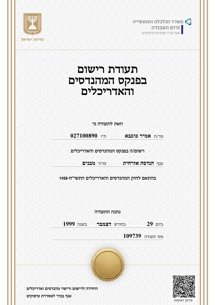 בעל ניסיון של כ 25 שנה בשיפוץ מבנים משותפים, כולל מבנים מסוכנים, משלב התכנון והכנת מפרט וכתב הכמויות, ניהול האתר ופיקוח שוטף על עבודות הקבלן וצוותי הביצוע, בדגש על בדיקת איכות העבודה והחומרים, הכל מושלם עד גמר הפרויקט.